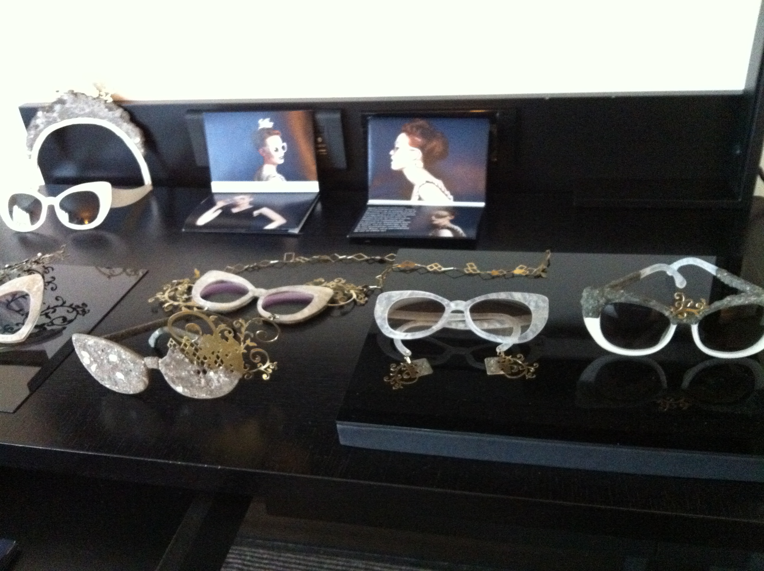 Ces lunettes sont le travail de Bachelor d’une étudiante de la HEAD (haute école d’art et design) de Genève. Elle a mélangé du béton et d’autres matériaux, associé à des détails fins et précieux (taillé avec une coupeuse usée dans l’horlogerie!). Un concept fantastique.
