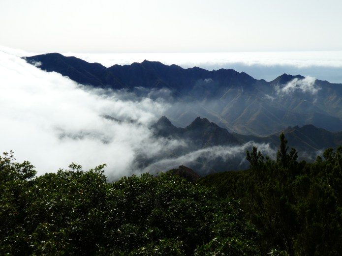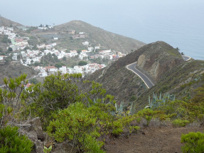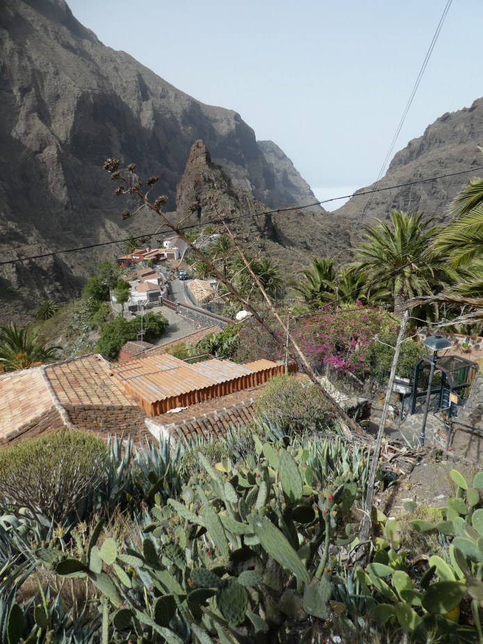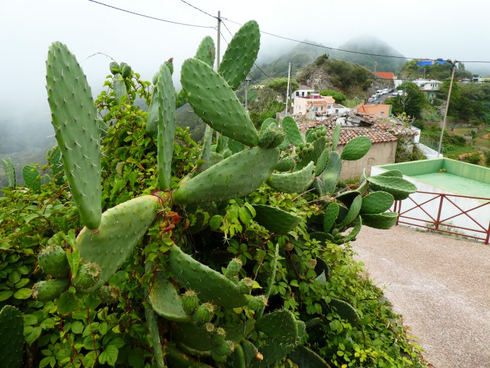 Cette chaîne de montagnes permet de nombreuses randonnées dans la forêt tropicale. Notre première promenade partait d’El Balaidero jusqu’au petit village de Taganana (500 mètres de dénivelé). Au départ de la promenade, le vent était fort et les arbres faisaient tomber des gouttes de condensation sur nous. Seigneur, j’avais oublié mon parapluie en Suisse! Dans cette bourgade discrète de Taganana, nous avons juste pris un en-cas avant de reprendre la montée.