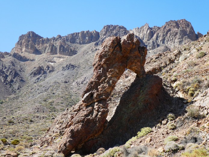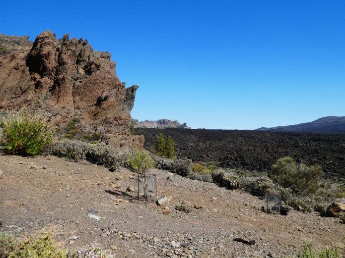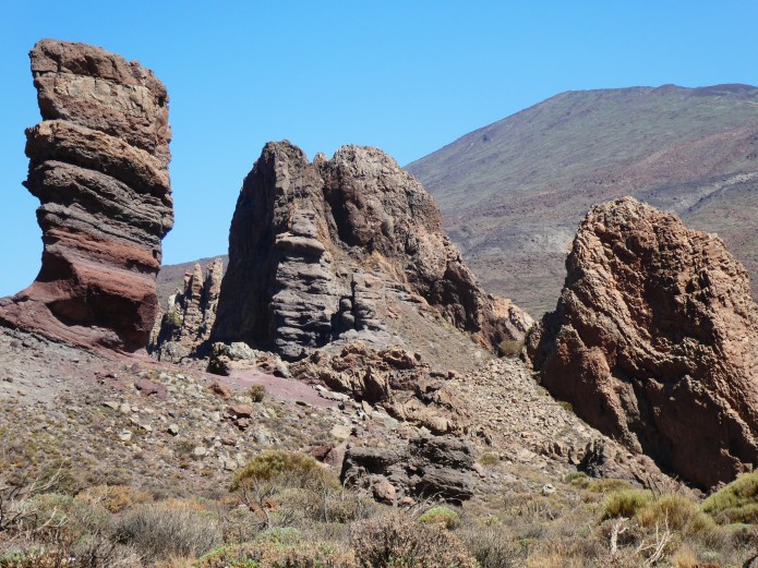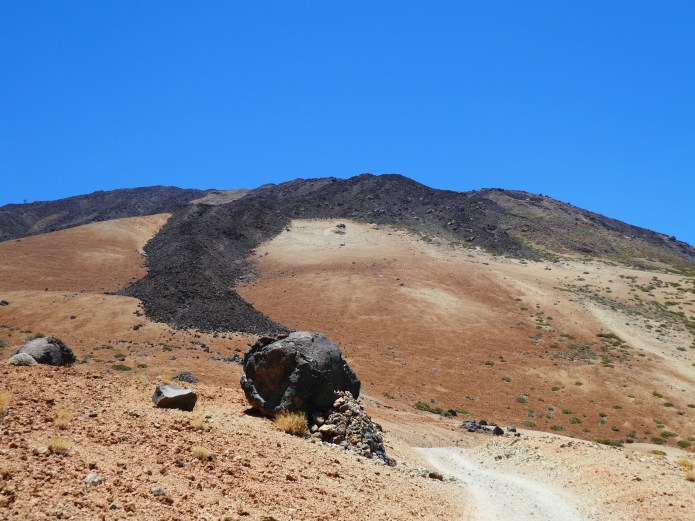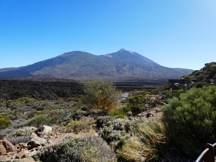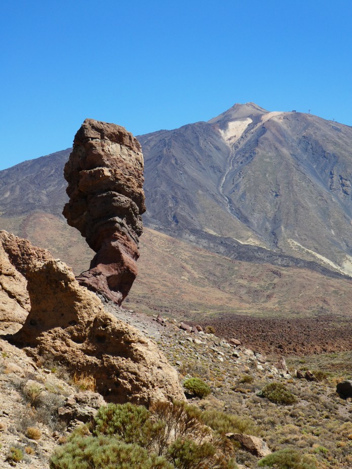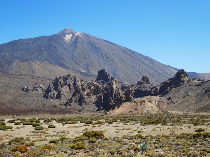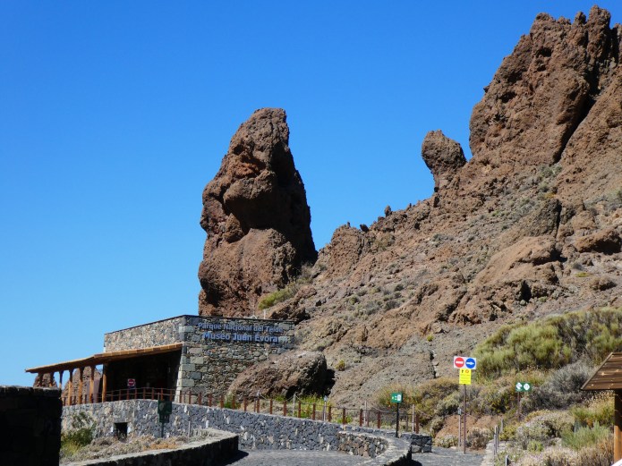 Le clou de notre visite sur l’île a été le volcan El Teide culminant à 3’718 mètres d’altitude. Si vous souhaitez monter jusqu’au sommet en téléphérique, réservez votre place dans un créneau de 2h. Bien organisées, nous sommes arrivées devant le départ du téléphérique, papier de réservation en main. Un gardien nous a expliqué qu’il n’était pas possible de prendre la cabine (cerrado*, le mot espagnol le plus utilisé de ce voyage), mais d’emprunter un chemin de randonnée pour la Montaña blanca. Nous avons serpenté un sentier entre les bombes volcaniques. A chaque portée fermée, nous trouvions une solution.