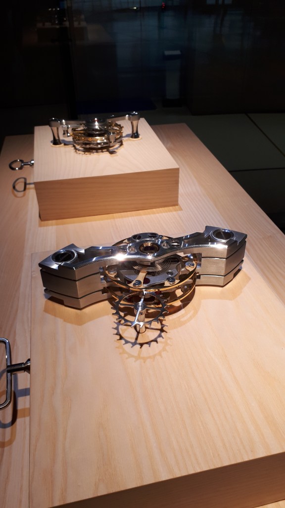 Les ateliers des horlogers sont disposés en bordure de la partie vitrée du Musée. « Les horlogers ne voient les visiteurs que très peu grâce à un vitrage spécial », nous explique notre guide. Rassurant de savoir qu’ils ne sentent pas épiés dans leur travail. Je n’ai aucune image d’eux, car il est interdit de les prendre en photo.