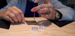 A la fin du parcours, le visiteur est invité à passer à la pratique. Armés d’une pince à épiler et d’un tournevis, il faut saisir de minuscules visses et les visser à une plaque. Les doigts un peu tremblants, on comprend mieux la concentration demandée aux artisans horlogers.