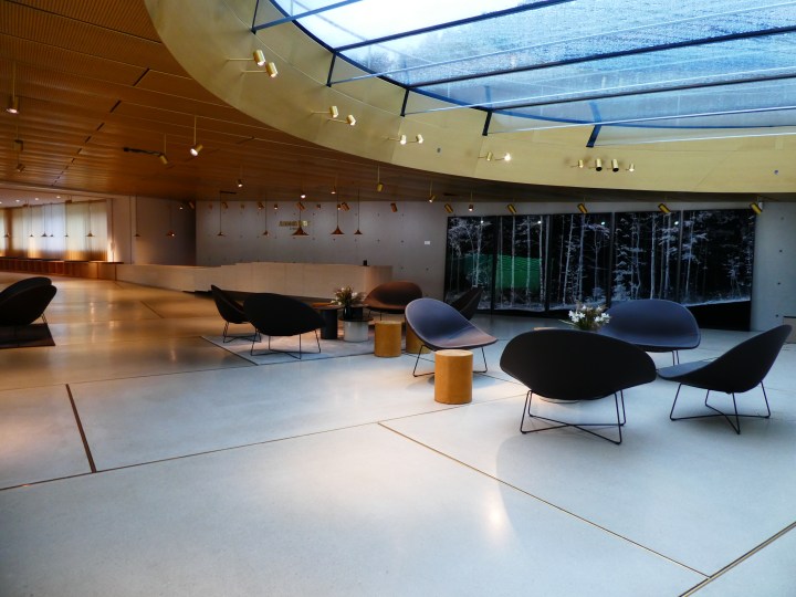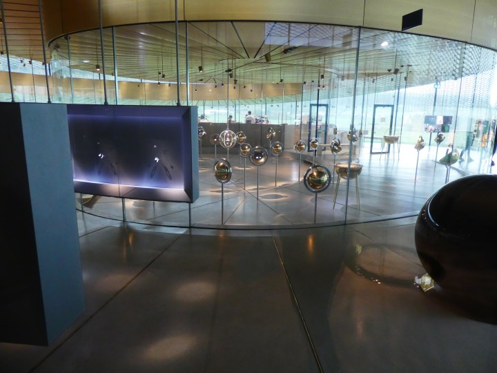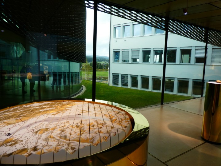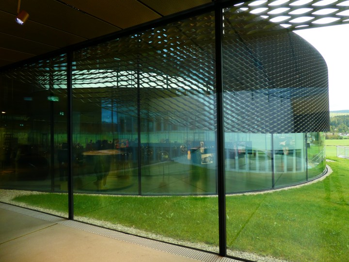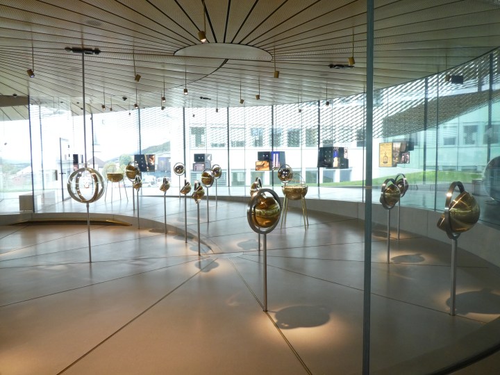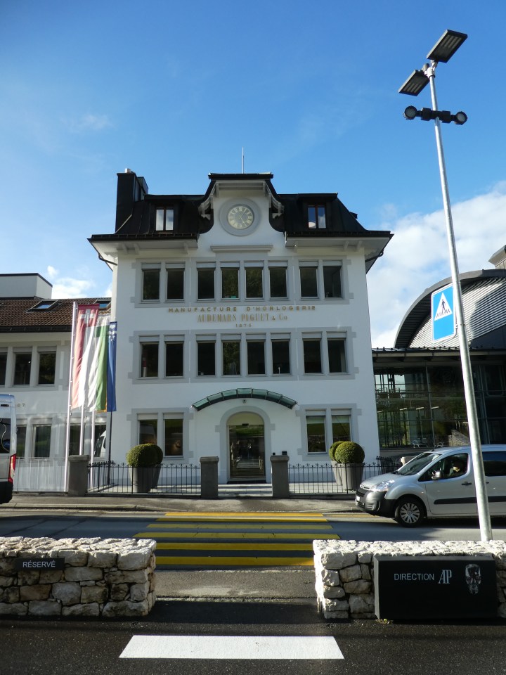 L’entrée du Musée se trouve dans la maison de maître de la famille Audemars. La bâtisse est typique de la région, blanche, boisée et haute en plafond. Elle fait partie d’un grand complexe avec des ateliers et un futur hôtel des horlogers. La marque fut créée en 1875 et peut s’enorgueillir d’être le dernier groupe horloger suisse indépendant. En effet, les membres de la famille Audemars Piguet sont les propriétaires de leur marque. Le cœur de l’exposition est enterré, dont la structure évoque une coquille d’escargot. Suite à un concours d’architecture, c’est un danois qui a imaginé ce bâtiment. D’épais vitrages bombés soutiennent un toit végétalisé. Les travaux ont duré 2 ans, depuis 2014.