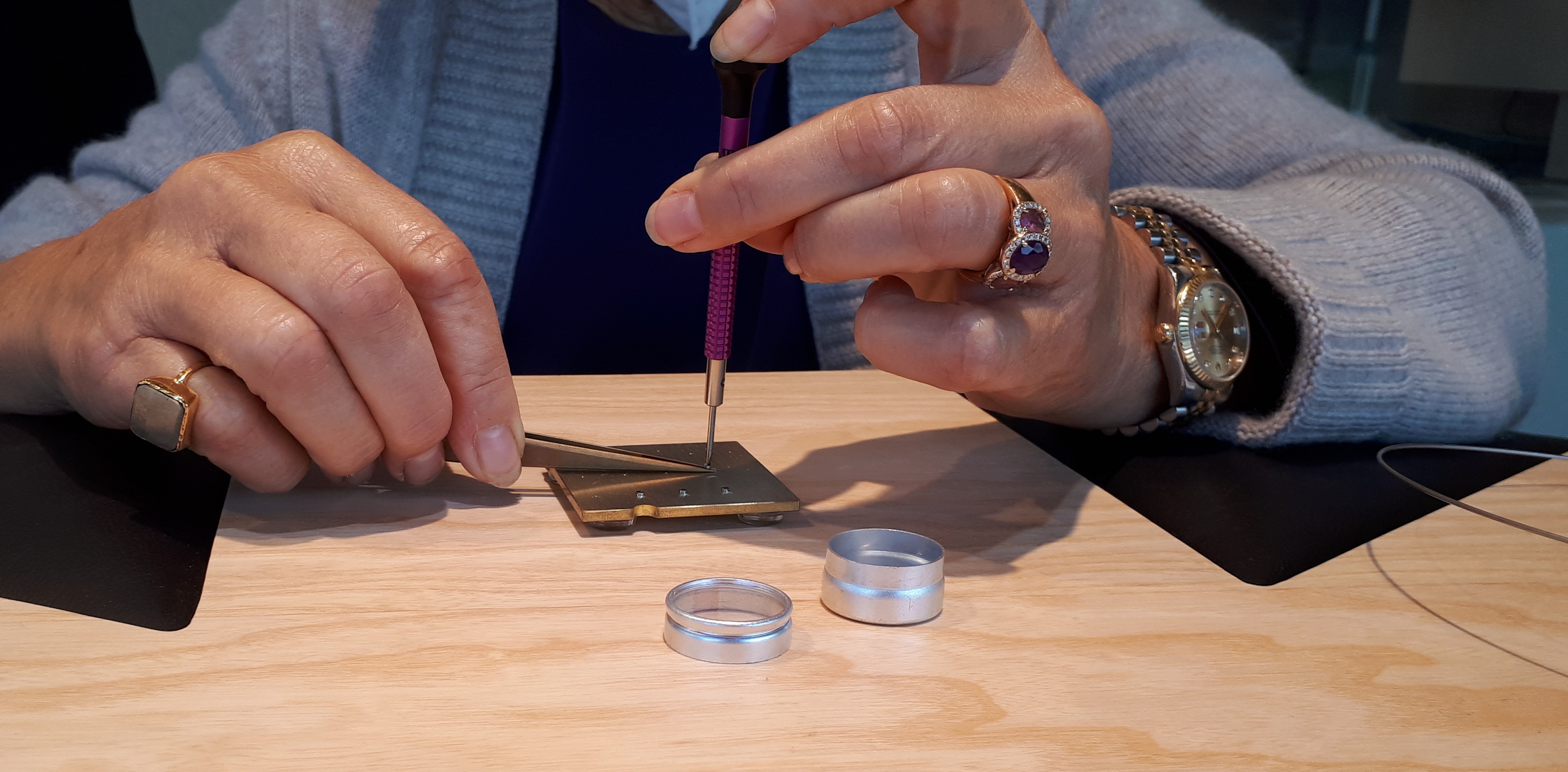 A la fin du parcours, le visiteur est invité à passer à la pratique. Armés d’une pince à épiler et d’un tournevis, il faut saisir de minuscules visses et les visser à une plaque. Les doigts un peu tremblants, on comprend mieux la concentration demandée aux artisans horlogers.