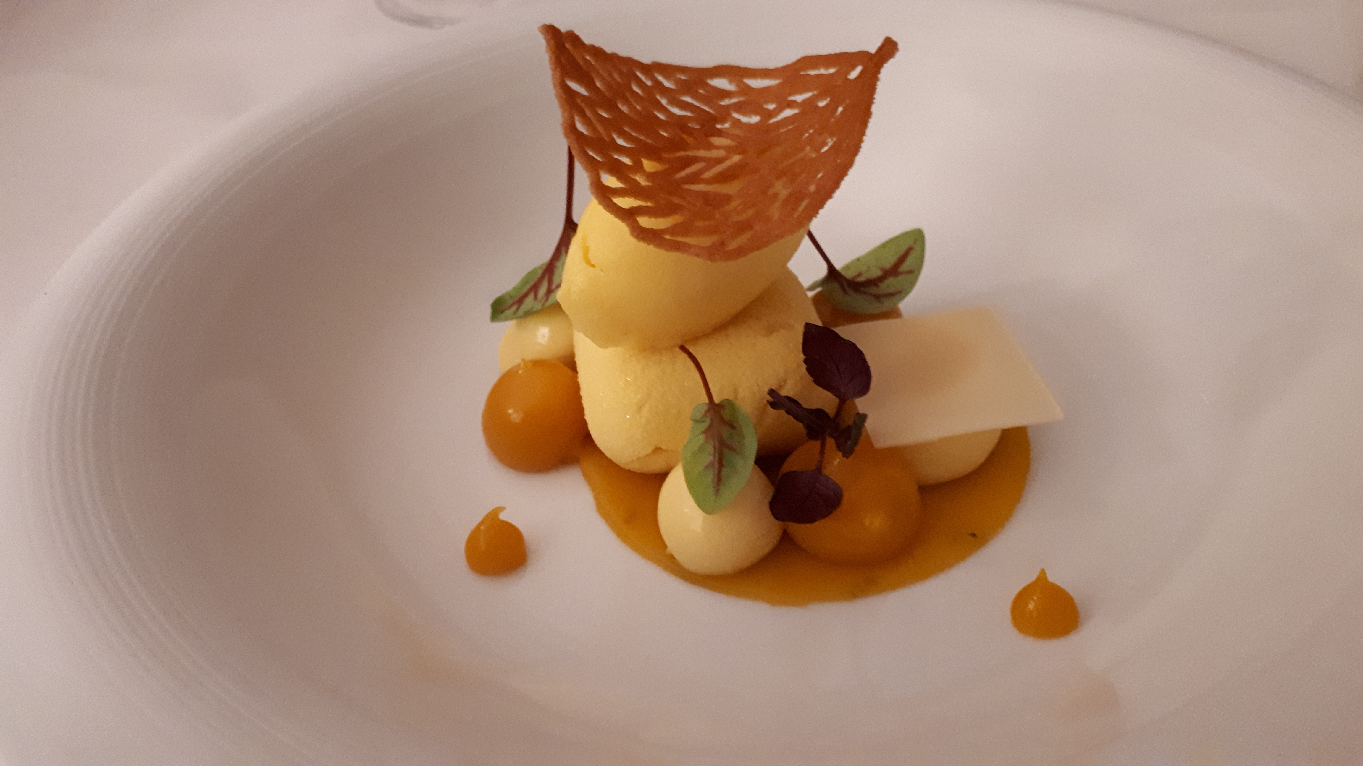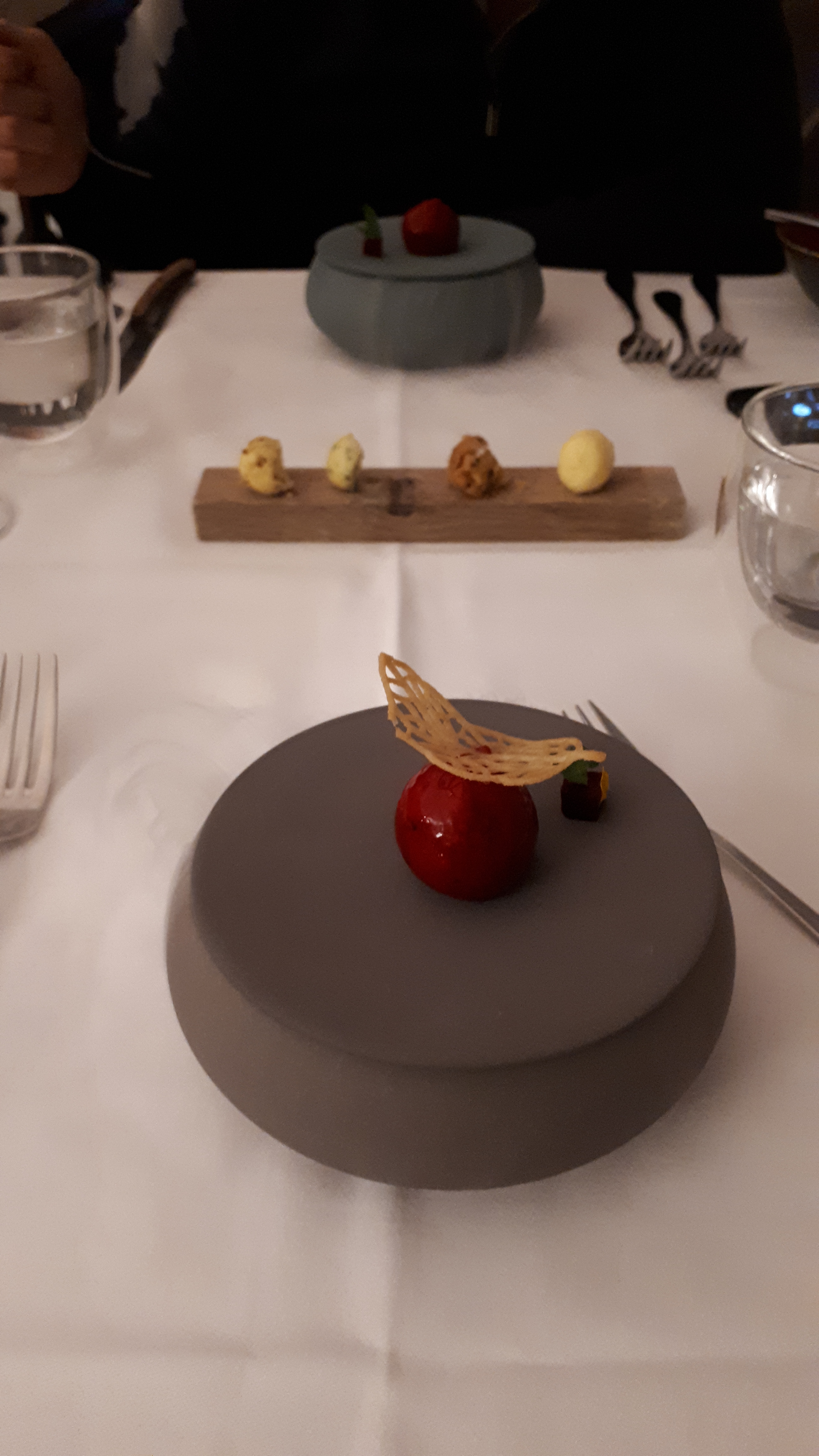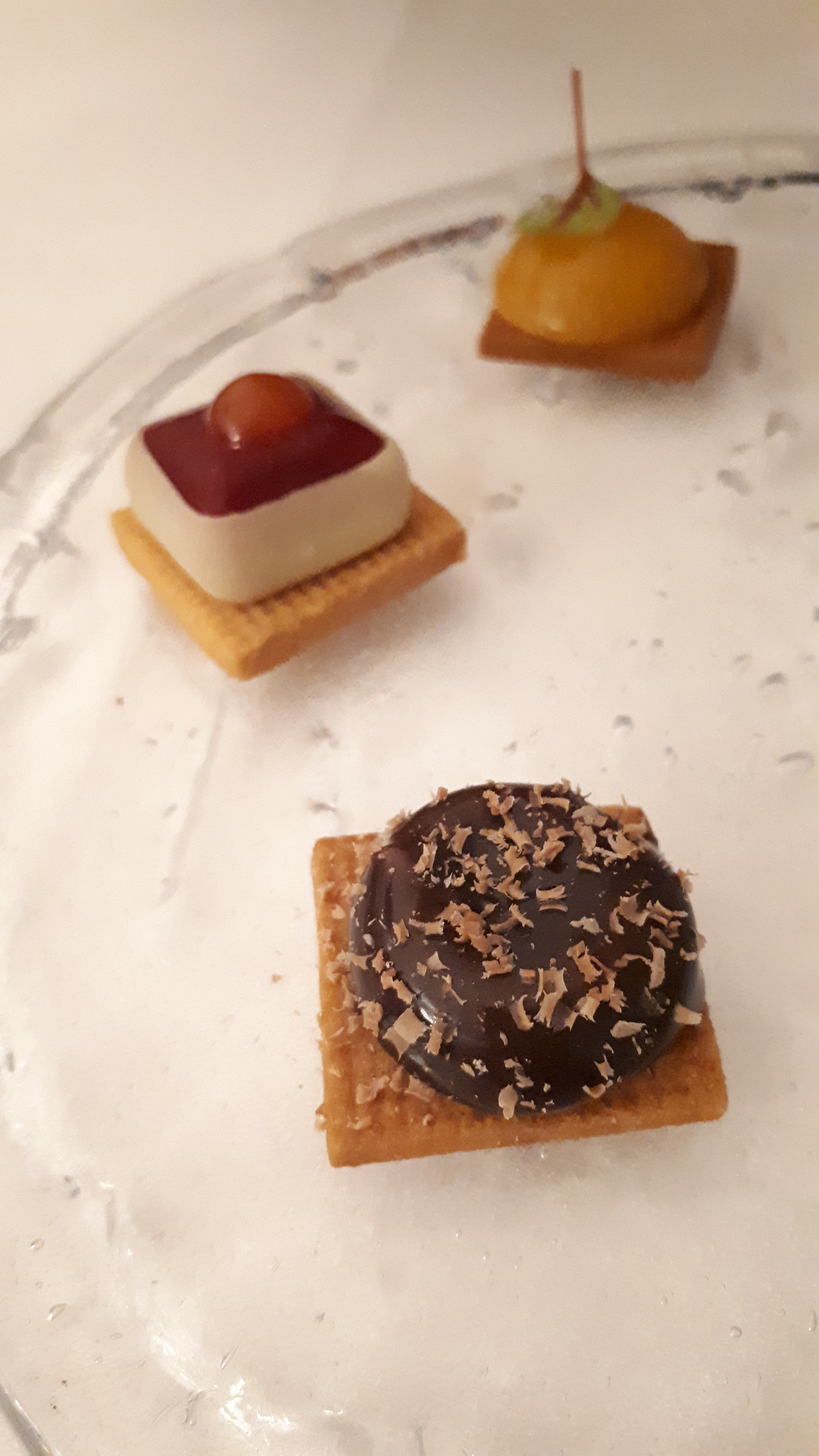 En fin de repas, la cheffe Marie Robert est passée à chaque table pour s’assurer que tout s’était bien passé. Elle est montée dans la galerie, sa légendaire chevelure rousse nouée en chignon au-dessus de sa tête (oui je suis attentive aux détails). Nous avons échangé quelques mots, en la complimentant sur sa cuisine originale.