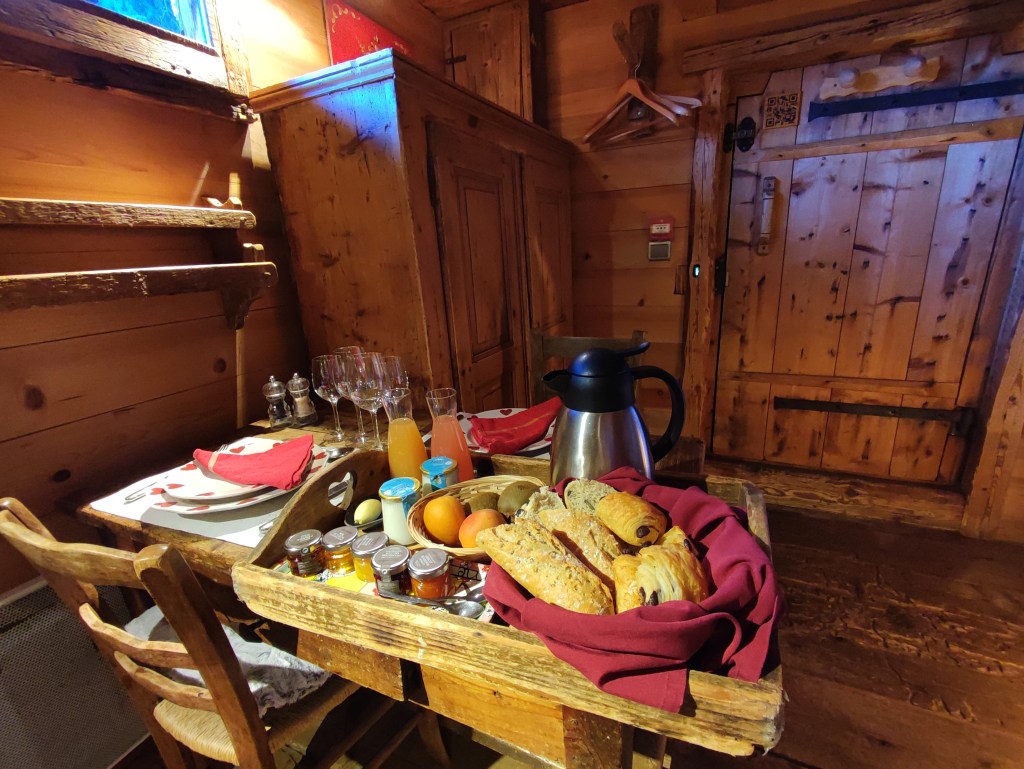 Nous avons séjourné dans le chalet les Clarines, tout mignon et dont la chambre sous le toit fait penser à une maison de hobbit. Somnambules et personnes grandes, prenez garde à ne pas vous payer le plafond en vous levant brusquement. Dans ce havre de paix il n’y a nulle urgence à se lever si vite (sauf pour admirer le lever du soleil sur le Mont-Blanc, pour les lève-tôt).