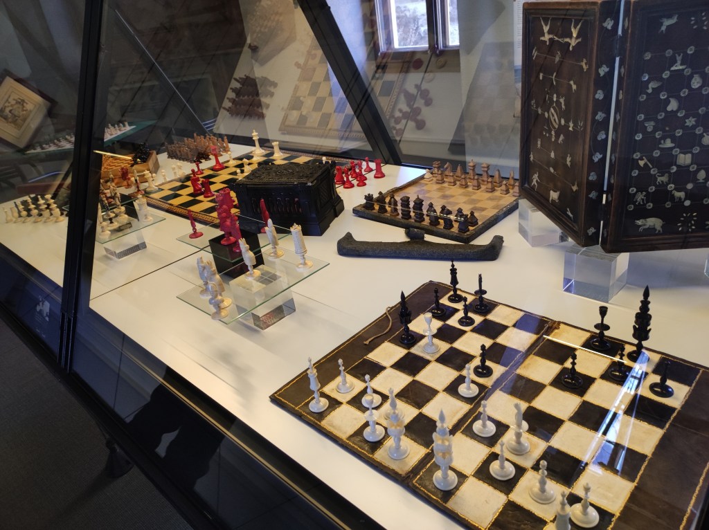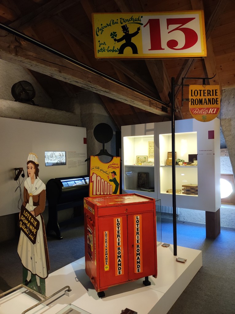Ainsi repus, nous avons pris avec mon compagnon la direction du Musée suisse du Jeu. Il est situé dans le magnifique Château de la Tour-de-Peilz, tout au bord du lac. On pourrait croire que l’établissement ne s’adresse qu’aux enfants, mais que nenni. Le musée expose des jeux anciens, de différents pays et époques. On apprend notamment que grâce aux voyageurs, les jeux ont pu être amenés dans d’autres contrées. Une salle sous les combles vous propose de passer à l’action : jeux de quille, jeux d’adresse, fléchettes, de quoi retrouver son esprit d’enfant. A la fin de la visite, on peut monter au sommet d’une tour jouxtant au Château, pour admirer la bâtisse de haut, ainsi que le lac.