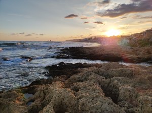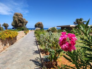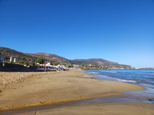 Nous avons séjourné à l’hôtel Kernos Beach dans la petite ville de Malia, à 30 km de la capitale Heraklion (25 mn. en voiture). Les plages sont belles, propres et la mer est chaude. A fin septembre, le pic de la haute saison est passé. Les commerçants, toujours heureux d’échanger avec nous, nous ont expliqué que la saison haute commence en avril, jusqu’en août. Ensuite, la fréquentation baisse jusqu’en octobre. En hiver, la plupart des hôtels et magasins sont fermés.