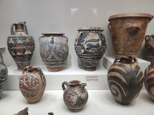 La visite du musée archéologique permet de comprendre l’histoire de l’île, de l’époque minoenne (de 2700 à 1200 av. JC) à l’époque romaine. Si vous êtes consciencieux comme moi, vous lirez les panneaux religieusement. Mais comme dans ces musées assez anciens, au bout de la centième jarre (tipois) et millième pièce de monnaie, on attrape le tournis. Néanmoins, cette visite est une bonne entrée en matière avant de visiter le palais de Knossos.