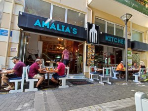 A Malia : Taverna Paradise: propriétaires adorables comme tout, verres de vin généreux et plats typiques savoureux. Moussaka et tagliatelles aux crevettes. Dans la vieille ville, la taverne Odas. Un coin qui a été épargné par la modernisation. On y mange bien et l’immense arbre rose sous lequel on mange est magnifique. A Heraklion: Amalia’s Kitchen. Dans un square à l’abri du flot des touristes, adresse typique. Veau avec riz au safran, poulet mariné avec potatoes. Spinalonga : Ta Kymata, à Plaka, terrasse donnant sur la mer et sur l’île de Spinalonga. Bons gambas, risotto aux moules. Rethymnon : restaurant Avli. On nous a toujours appris à fuir les restos vides, car il pourrait être mauvais. Là, l’absence de foule aurait dû nous indiquer que la mariée était trop belle. Au final, une addition salée dans un semi-gastro pour manger sur le pouce, comme si on s’était rendus à l’hôtel de Ville de Crissier juste pour admirer le lac Léman.