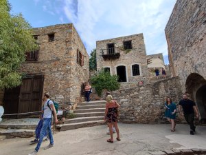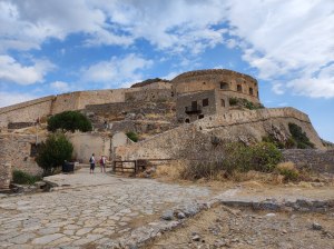 Pour accéder à cette île chargée d’histoire, on se rend au petit village de pêcheurs de Plaka. Comptez 10€/p. pour l’aller-retour, puis 8 €/p. pour entrer dans le site. L’île de Spinalonga a connu plusieurs occupants au fil des siècles. Elle a été colonisée par les Vénitiens autour de 1204, quand ils occupaient la Crète. Un fort fût édifié en 1579, mais endommagé pendant les guerres ottomanes opposant les Grecs aux Ottomans (anciens turcs). En 1903, l’île est réhabilitée en léproserie. Ainsi, des personnes atteintes de la lèpre ont été acheminées par bateau, désinfectées et placées dans des petites maisons. Ils finissaient leur vie dans des conditions précaires, coupés du reste du monde. C’est seulement en 1957 que la léproserie fût abandonnée suite à la découverte d’un traitement. Le tour de guet permet de voir les restes des habitations où les lépreux et médecins vivaient. Sur la promenade, on découvre une petite église orthodoxe, qui a supplanté une ancienne mosquée (une autre trace du passage des Ottomans). Bien que l’histoire des lieux soit chargée émotionnellement, les bâtiments ont été bien préservés, la vue est à couper le souffle (surtout si vous grimpez au sommet de l’île). Cette excursion est le coup de cœur de ce voyage. ***