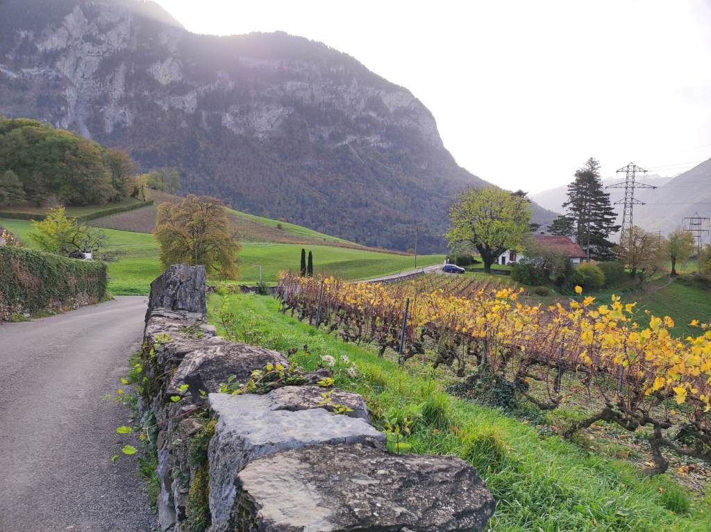 Déterminée à retrouver la lumière, j’ai pris des livres, un carnet et un stylo (car je sais écrire, à défaut de coudre), direction le Couvent la Pelouse à Bex. Depuis le Valais central, on se rend à Saint-Maurice, puis on enjambe le Rhône pour le village de Lavey. Un étroit chemin sillonne au milieu des vignes, sur la colline de Chiètres. On passe à côté de la brasserie de l’Abbaye. Jadis, les religieux brassaient leur bière, savoir-faire récemment remis au goût du jour. Sans le savoir forcément, on quitte le Valais pour entrer en terres vaudoises. La colline fait le coude entre Saint-Maurice à l’est et Monthey à l’ouest.