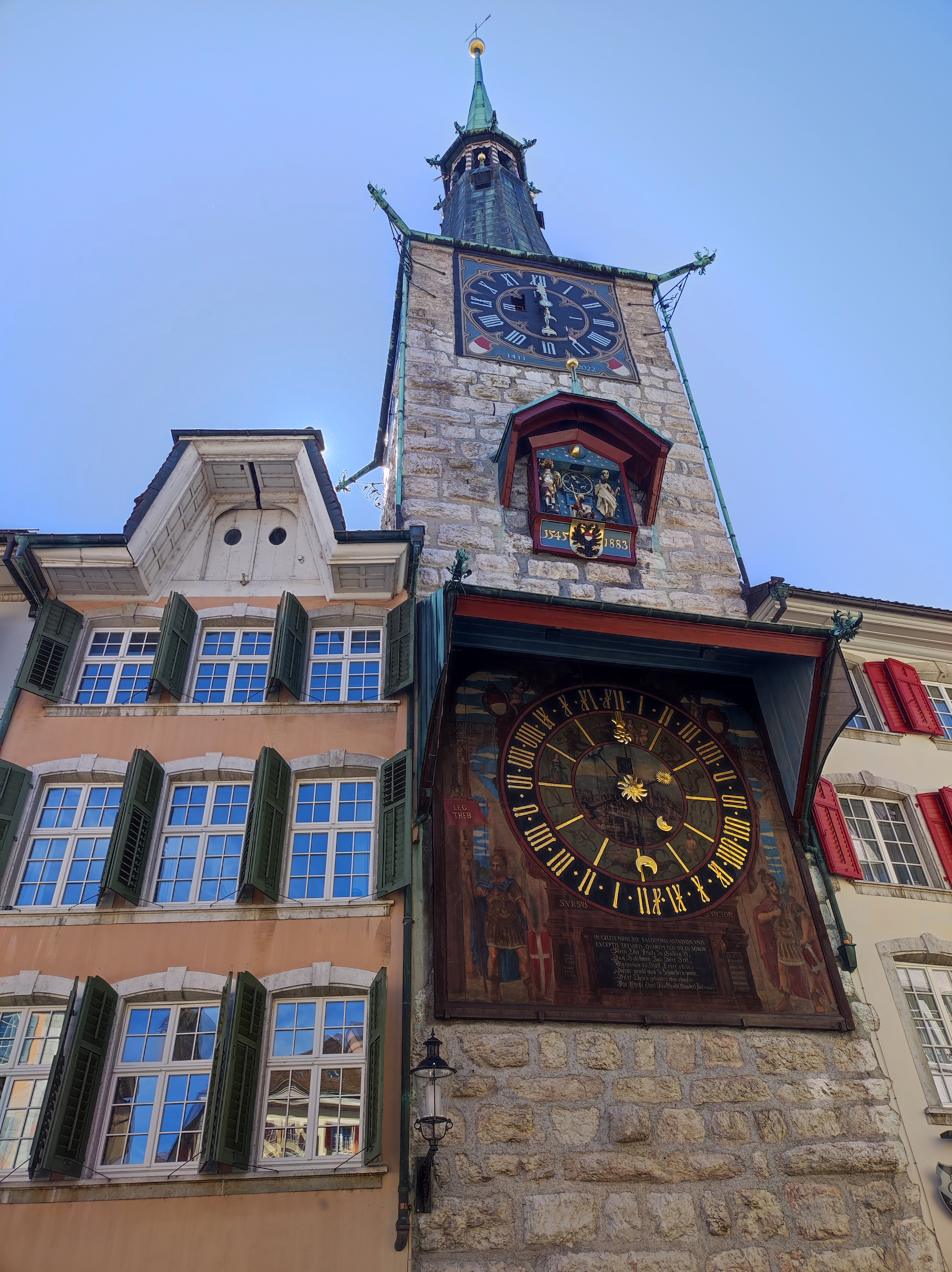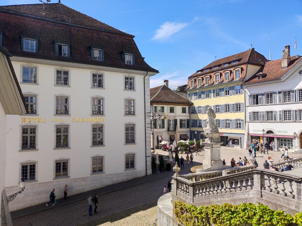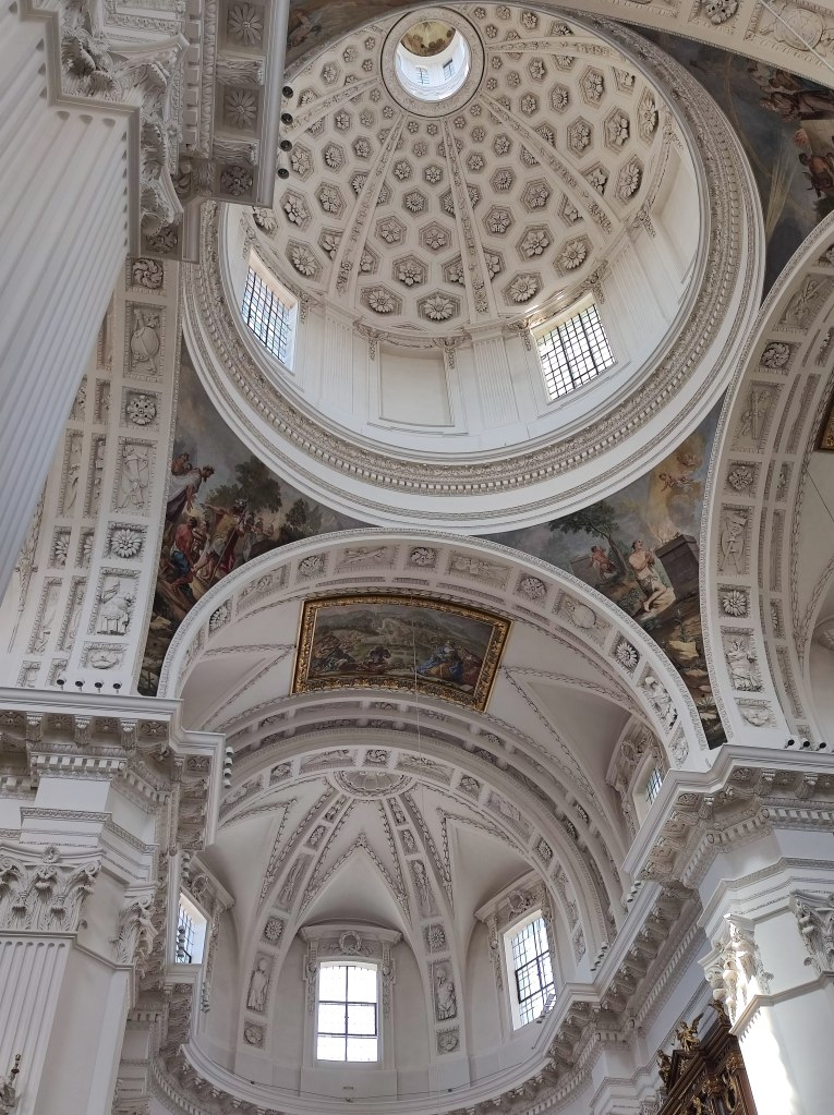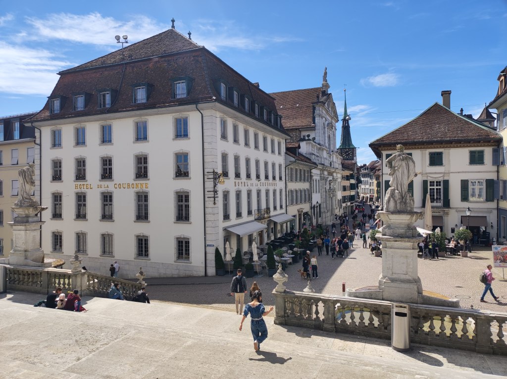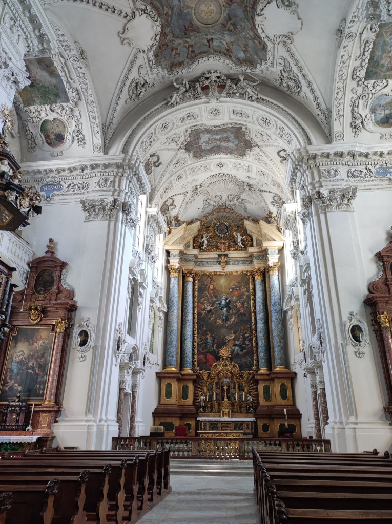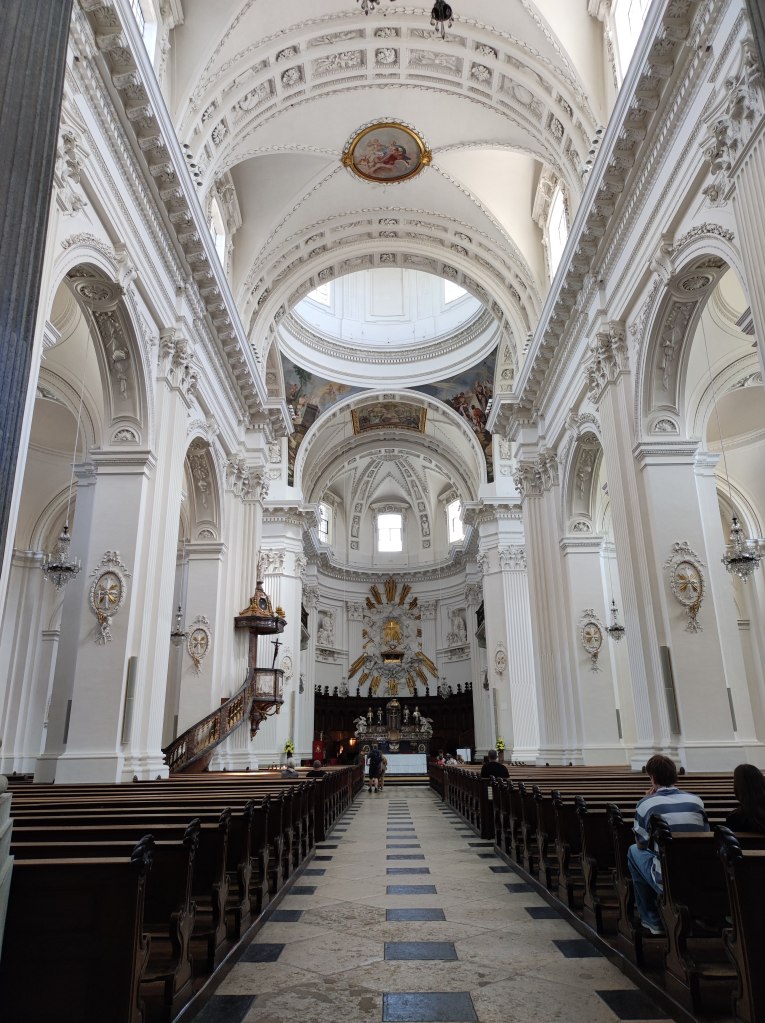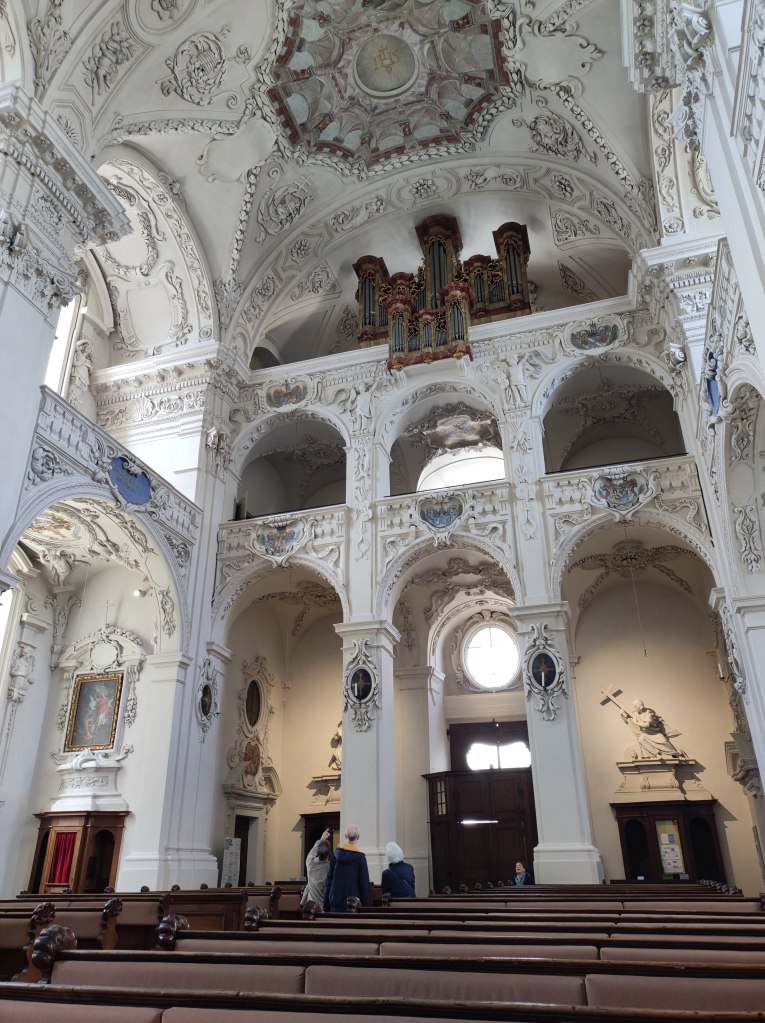 L’église Saint-Ours-et-Saint-Victor, aussi appelée cathédrale de Soleure, est bien plus imposante (1762-1773). En termes de décoration, elle paraît presque nue à côté de celle des jésuites, mais elle impressionne par sa hauteur. Un peu comme à New-York, on se fait des torticolis à admirer les fleurs sculptées dans la coupole.