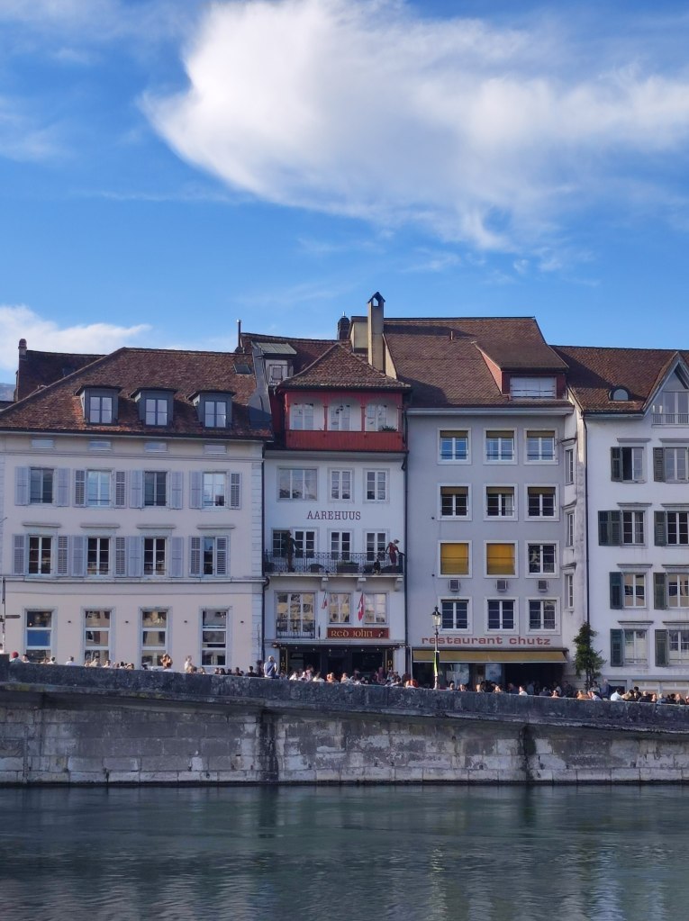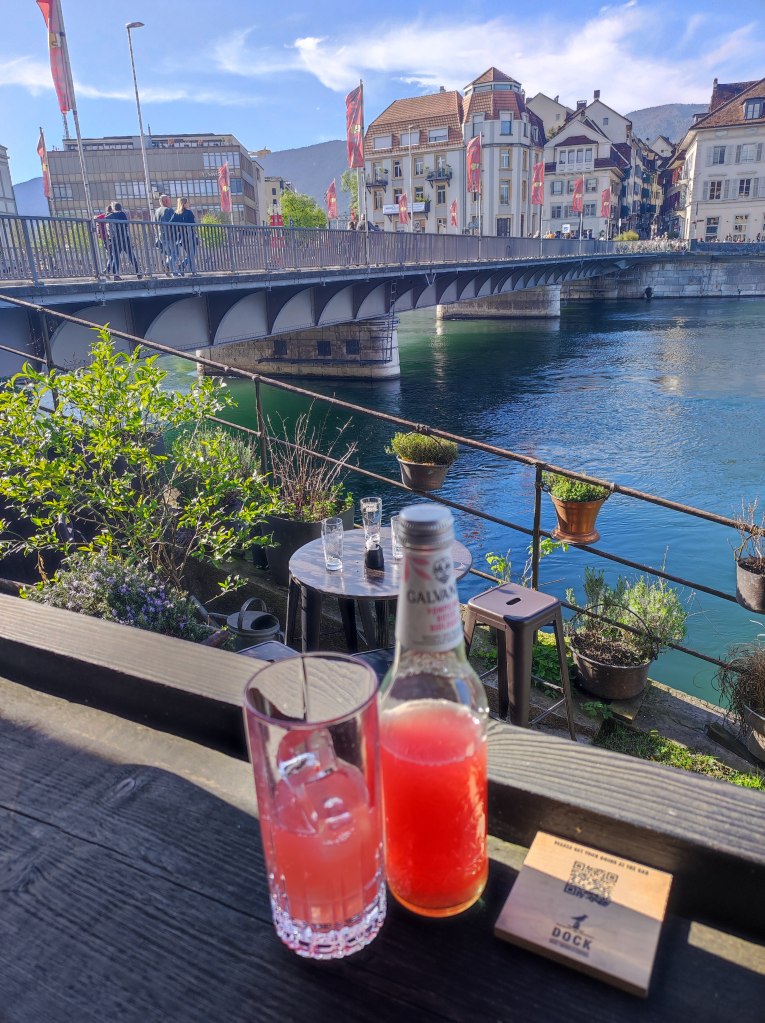 Nous avons longé les quais le long de l’Aare. C’est le coin favori des gens pour se retrouver autour d’un bon verre. Nous avons pris un verre au « The dock », un bar où la terrasse descend en pente douce et permet de regarder les bateaux naviguer sur le fleuve.