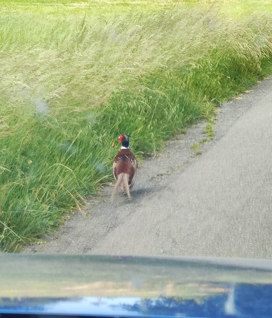 Sur la route pour nous rendre au mariage à Toulouse, nous avons croisé un magnifique faisan. Quand il a aperçu notre voiture, il a foncé droit devant lui, comme s’il pouvait nous semer. Constatant son erreur d’appréciation, il a fini par plonger à gauche dans les fourrés. Comme quoi, dans la vie, même si la route paraît toute tracée, il ne faut pas hésiter à changer de direction, histoire de ne pas perdre de plumes ! 🙂