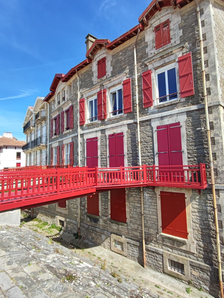 On retrouve ces maisons rouges et blanches typiques du pays basque. Cette ville était quasiment ravagée par les marées en 1680. Finalement, Napoléon III accepte le crédit pour construire 3 grosses digues pour fermer la baie (Socoa, Sainte-Barbe et Artha).