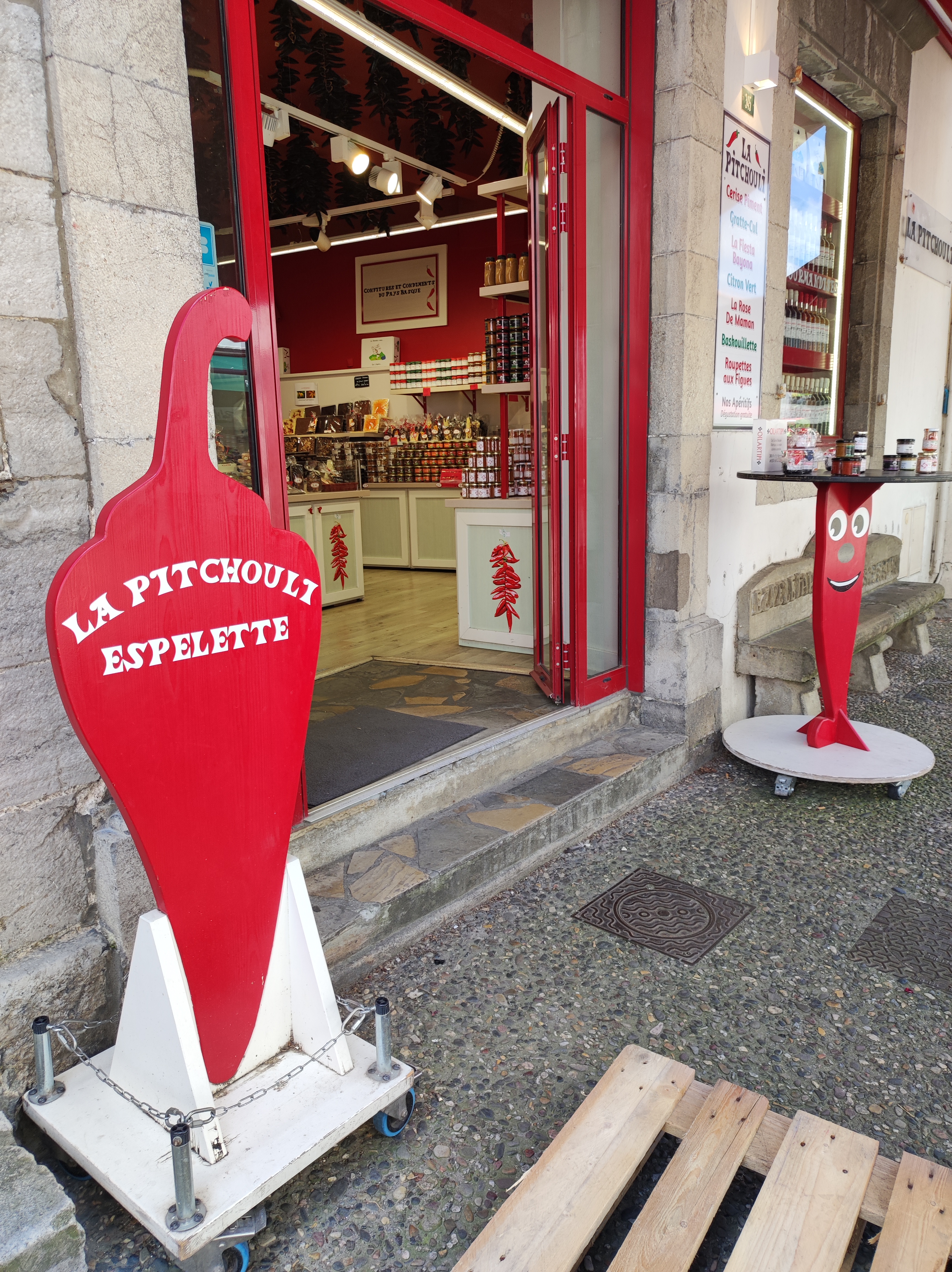 Ce nom vous dit sûrement quelque chose. Cette ville basque typique habillée en rouge et blanc, suspend des piments sur les façades pour les faire sécher. Dans le resto où l’on s’attable, chaque met, de l’entrée au dessert, contient de cet ingrédient magique. Contrairement à ce qu’on pourrait croire, le sel du piment d’Espelette n’est pas du tout fort. Une vendeuse explique à des clients que seuls la purée de piment et les piments entiers en bocaux sont très relevés. « Si vous arrivez à croquer dans un piment oiseau, alors ces deux produits sont pour vous », ajoute-t-elle. On a opté pour le sel.