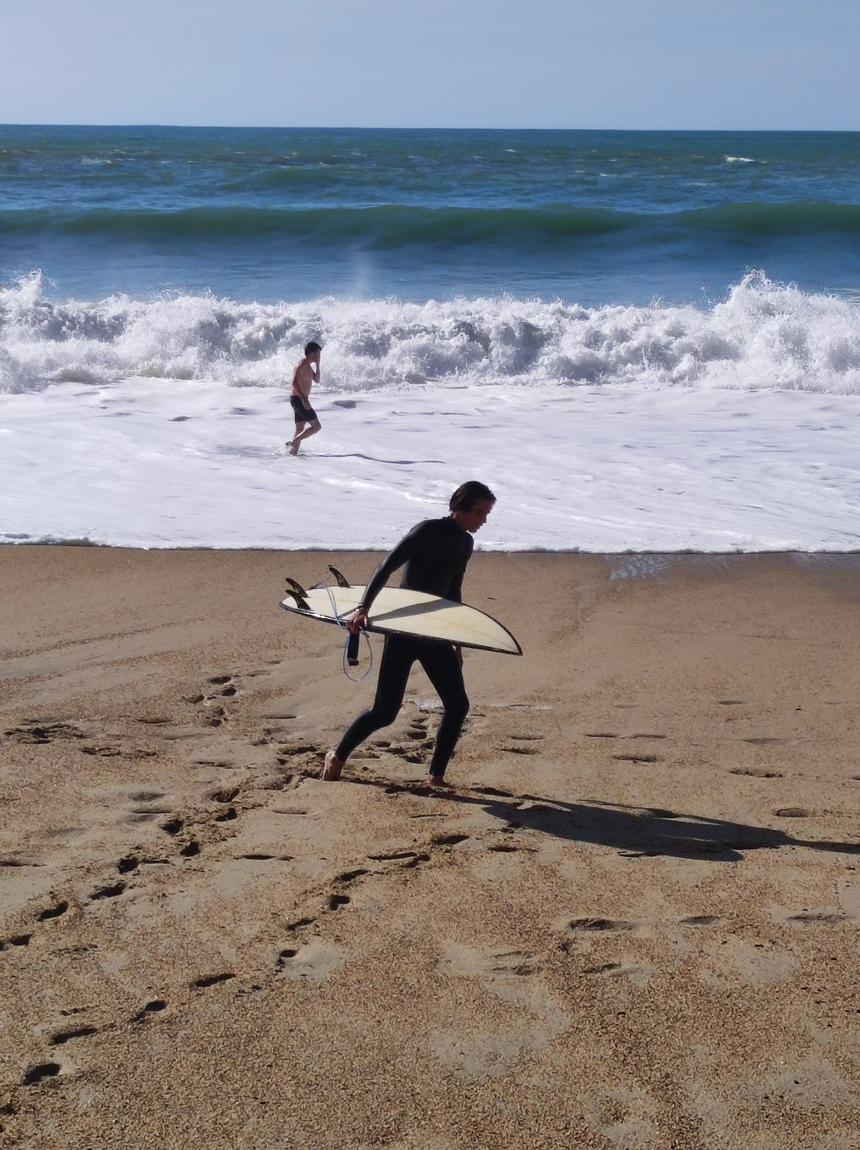 La ville est réputée pour son spot de surf, à l’image d’Hossegor (FR) et Nazaré (Portugal). Quand on voit la puissance des vagues, on comprend la quantité de surfeurs qui se baladent dans les rues, planche sous le bras comme on ramène sa baguette de pain. On remarque aussi les sauveteurs, les mêmes « baywatch » de Malibu, en grappe à un endroit précis de la plage. En effet, il y a deux parties extrêmement dangereuses où le courant repousserait un nageur vers l’océan. Des drapeaux de couleur sont plantés pour les nageurs peuvent « nager » en sécurité. Je mets des guillemets, car c’est plutôt jouer à ne pas se faire renverser par les vagues. Les rares nageurs sont armés de palmes et habitués à se battre contre la force du courant.
