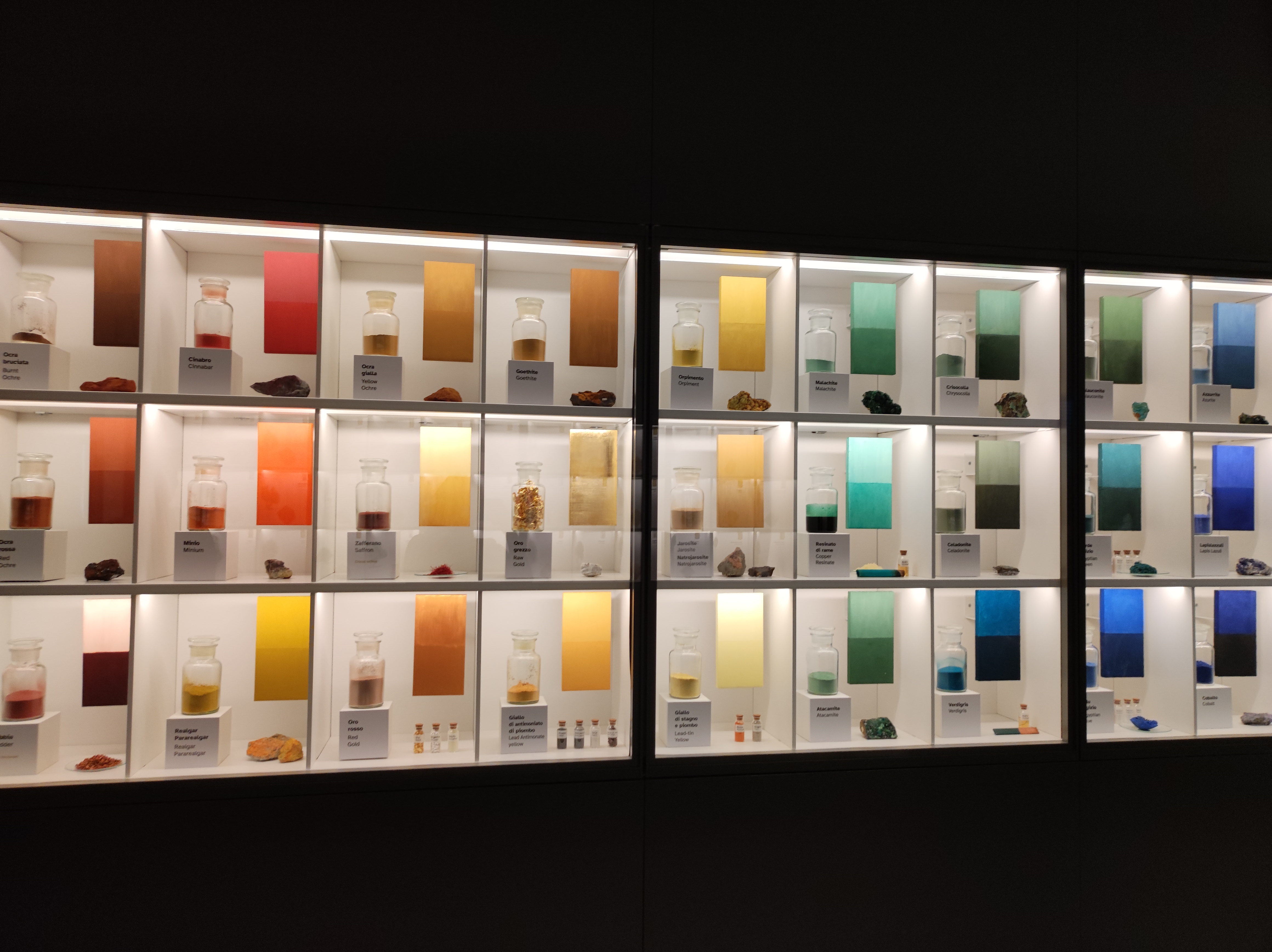 - La présentation des pigments de couleur fabriqués à partir de minéraux ou d’éléments naturels.