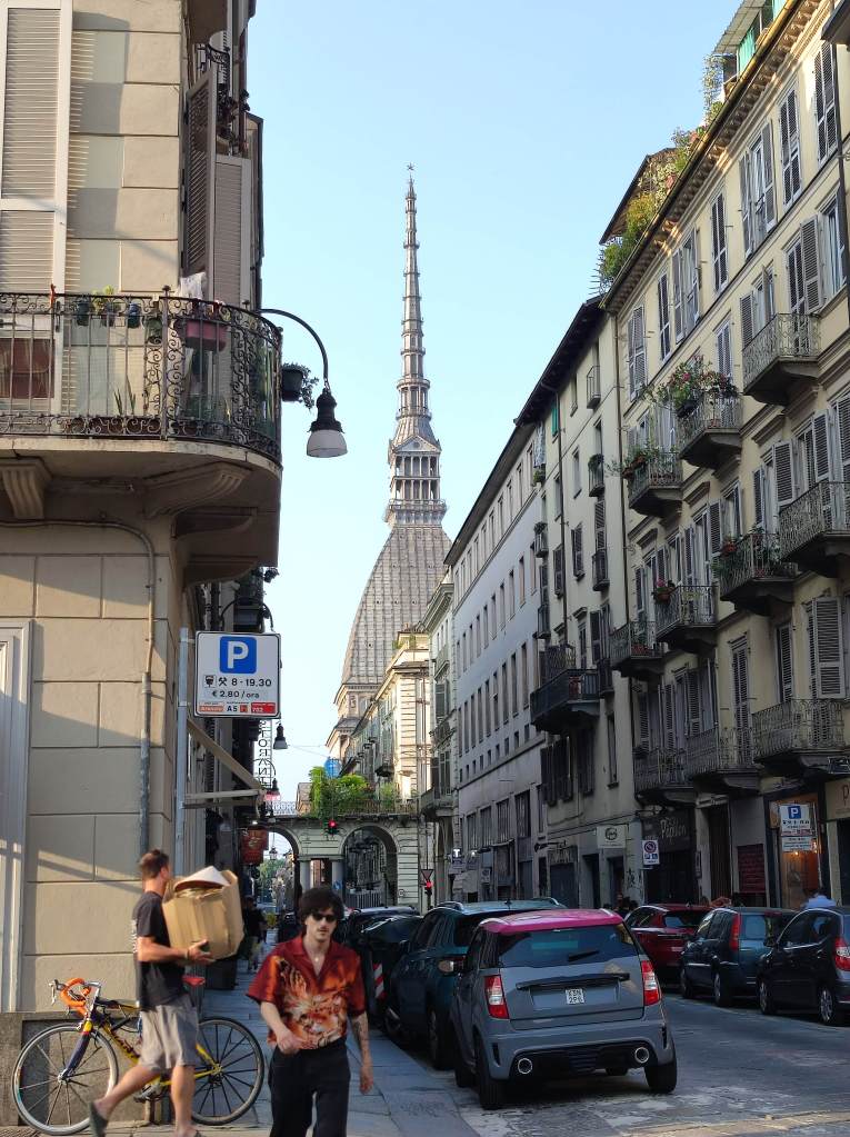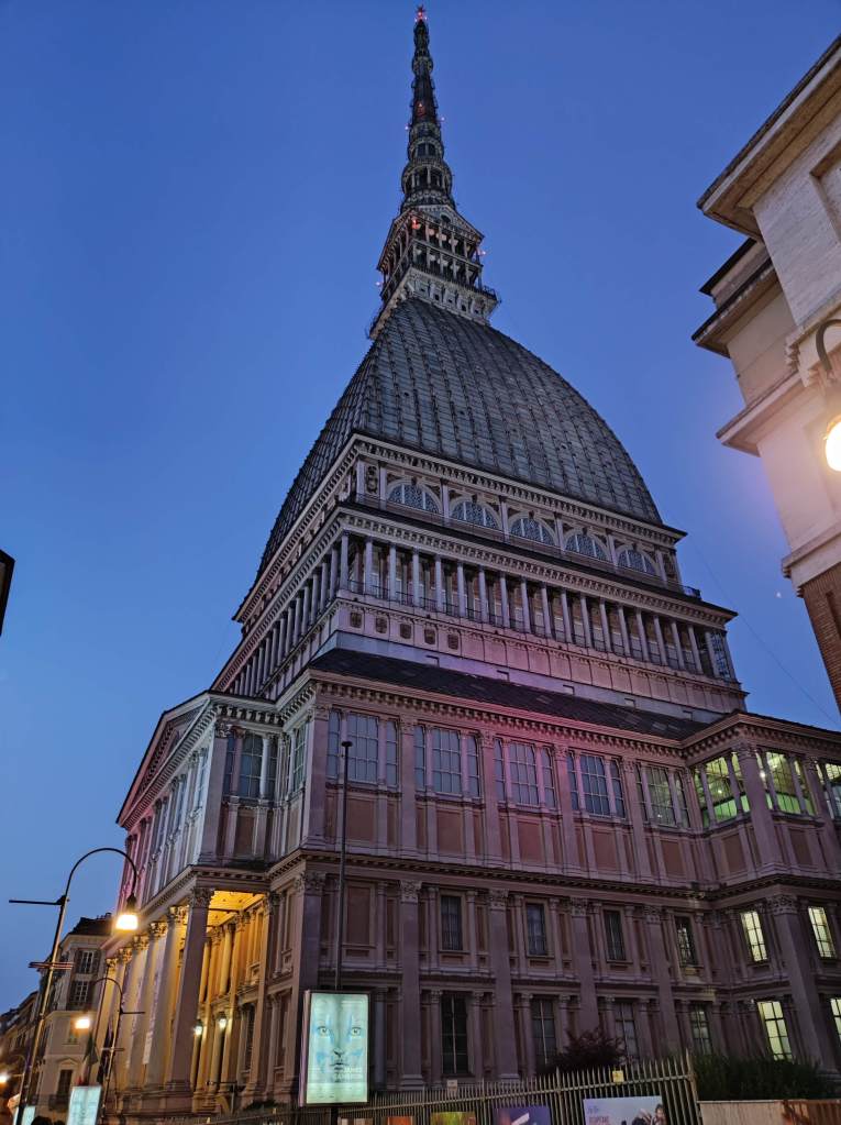 Pour visiter cet imposant bâtiment, on sort de la zone touristique pour se rendre en direction du fleuve Pô. L’avantage de ce « caprice d’architecte » est que sa pointe se voit de loin. Le « Mole Antonelliana » est un bâtiment qui mélange les styles néo-classique et néo-gothique. Sa construction a débuté en 1863 et s’achevée en 1889 (soit 99 ans avant ma naissance). Sa pointe culmine à 166 mètres de hauteur.