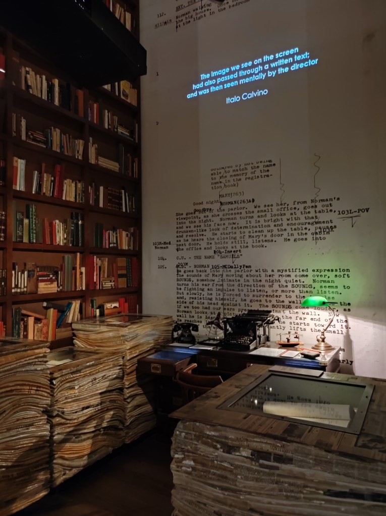 A l’intérieur, l’exposition permanente présente tous les corps de métier sur un plateau de tournage : scénariste, costumière, casteur, dompteur de lion, régisseur, cascadeur et j’en passe. J’ai bien sûr passé un bon moment devant l’espace dédié au travail du scénariste.